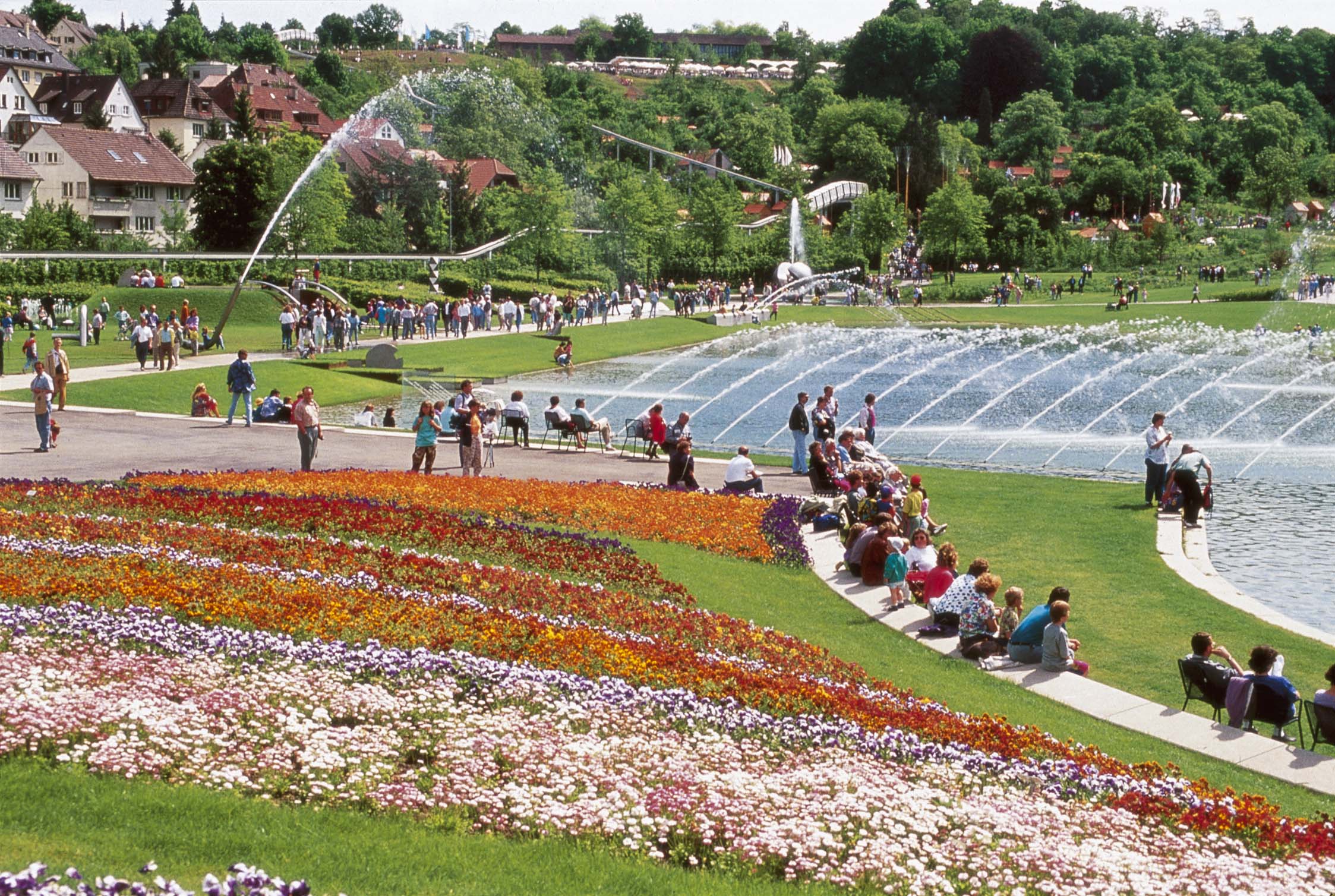Die IGA Stuttgart 1993 fasste die Flächen, die bei den vorangegangenen Gartenschauen gestaltet wurden, zu einem Grünzug zusammen. Die Schlossgartenanlagen, der denkmalgeschützte Rosensteinpark, die Wilhelma, der Leibfriedschen Garten, der Wartberg und der Höhenpark Killesberg wurden über Brücken und Stege zu einer großen zusammenhängenden Parklandschaft verbunden, die sich durchwandern lässt.