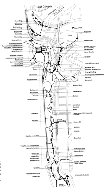 In Stuttgarts erster Bundesgartenschau 1961 waren der Obere und Mittlere Schlossgarten erfolgreich neu gestaltet worden. Bei der zweiten BUGA wurde der Unteren Schlossgarten als Verbindung zwischen Oberem Schlossgarten und Neckarufer umfangreich saniert. So entstand eine großzügige Grünfläche, die auch die Mineralbäder der baden-württembergischen Landeshauptstadt harmonisch miteinbettete. Auf dem Schwanenplatz wurden außerdem zehn „Berger Sprudler” angelegt. Die künstlichen Geysire sind seither das Wahrzeichen der zweiten Stuttgarter Bundesgartenschau.