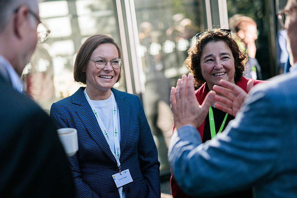 In zwei Panel-Runden blickten Vertretende aus Politik, Städten und der grünen Branche kritisch auf die Ergebnisse: Der Wuppertaler Oberbürgermeister Prof. Dr. Uwe Schneidewind, der ehemalige Mannheimer Oberbürgermeister Dr. Peter Kurz, Professorin Bettina Oppermann (Leibniz Universität Hannover, Präsidentin DGGL) sowie Dr. Ellen Madeker (Airbnb). Die grüne Branche war vertreten durch Thomas Banzhaf, Eva Kähler-Theuerkauf (Präsidentin Zentralverband Gartenbau e.V.), Hajo Hinrichs (Präsident Bund deutscher Baumschulen e.V.) und Prof. Stephan Lenzen (Präsident Bund Deutscher Landschaftsarchitekt:innen). Durch das Programm führte Moderatorin Katie Gallus.